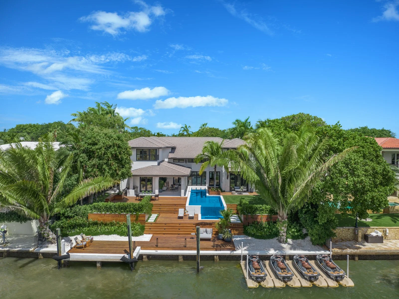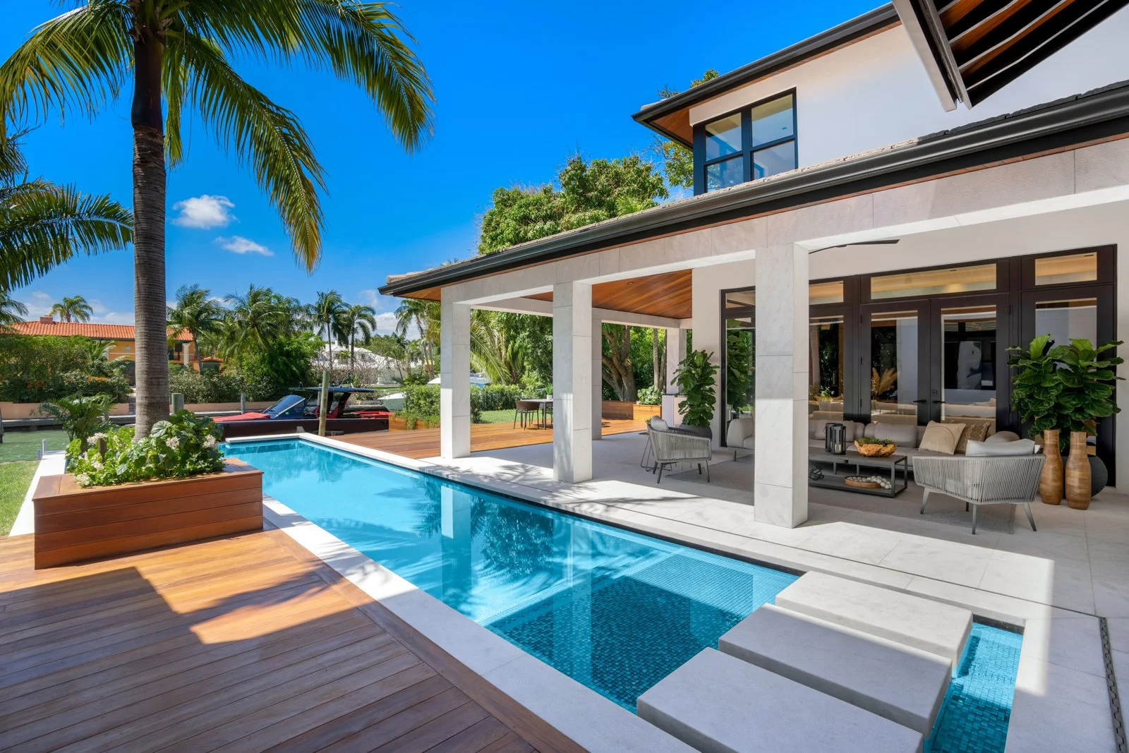 Casa Exumas is a stunning example of high-end renovation and construction, blending cutting-edge design with timeless craftsmanship. From the soaring 25-ft ceilings and statement fireplace in the living room to the gourmet kitchen’s Carrara gold marble countertops and Brazilian walnut cabinetry, every inch of this waterfront residence reflects meticulous attention to detail. Highlights include custom wine storage, a spa-style master suite, a Crestron smart system, and a fully equipped summer kitchen — all seamlessly integrated into a thoughtfully reconfigured layout that maximizes luxury, flow, and functionality.